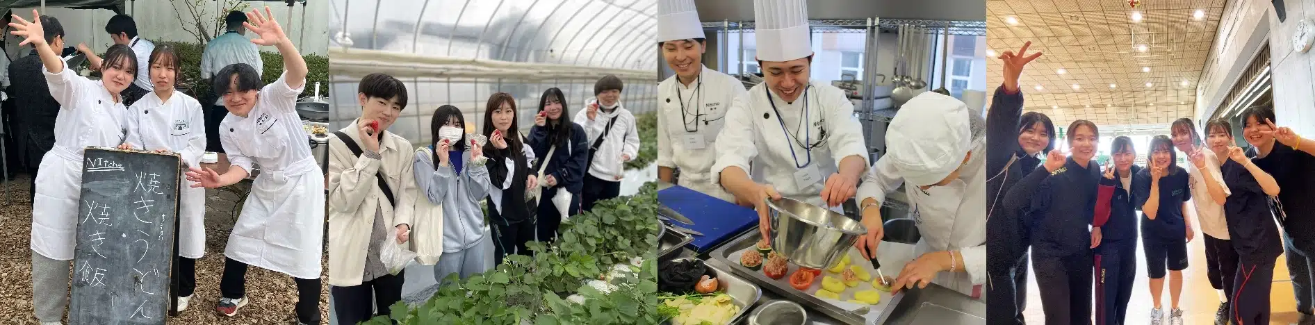 調理、お菓⼦作りにはコミュニケーションが⼤事です。そのために学校⽣活の中で仲間との交流をNitchoは⼤切にしています。